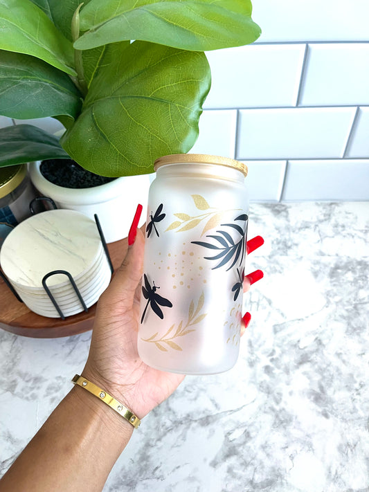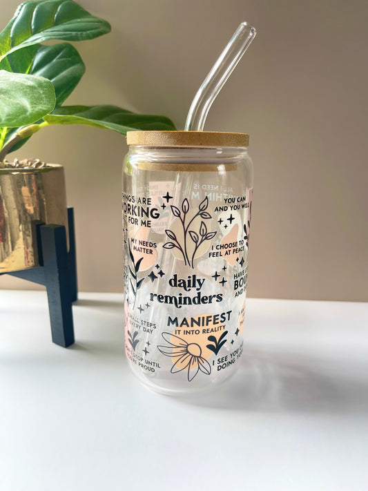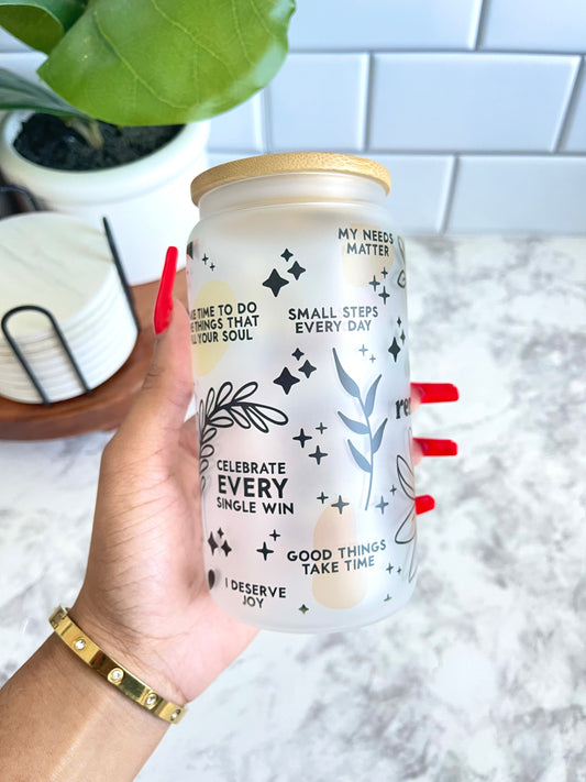Frosted Glass Cup with Bamboo Lid (Daily Reminders)