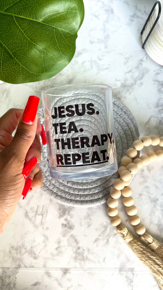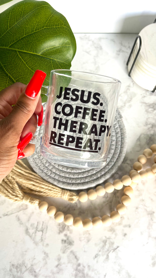 Jesus, Coffee & Therapy Glass Coffee Mug