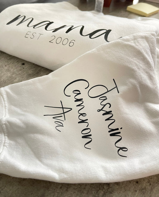 Custom Name Sleeve Sweatshirt for Mama, Auntie, Gigi, Grandma, Grandpa