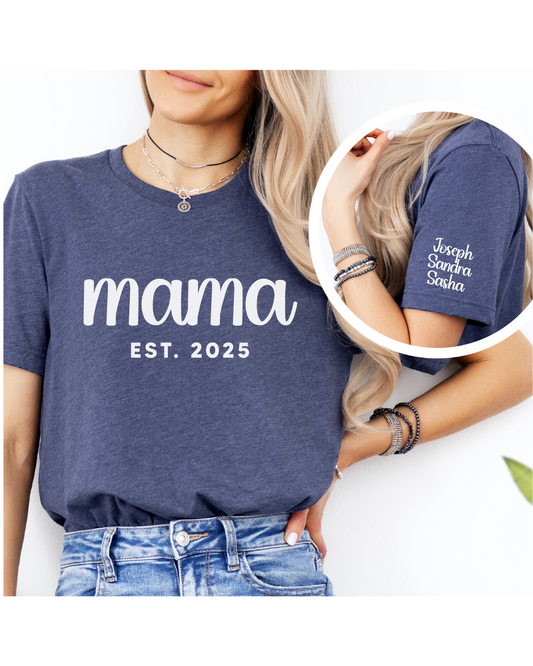 Personalized MAMA T-Shirt – Custom Name Sleeve